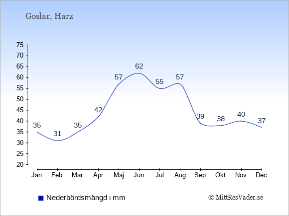 För att se hur vädret i Goslar skiljer sig från vädret hemma, kan du också jämföra siffrorna måned för måned med motsvarande siffror för Sverige under samma period här: Goslars klimat.