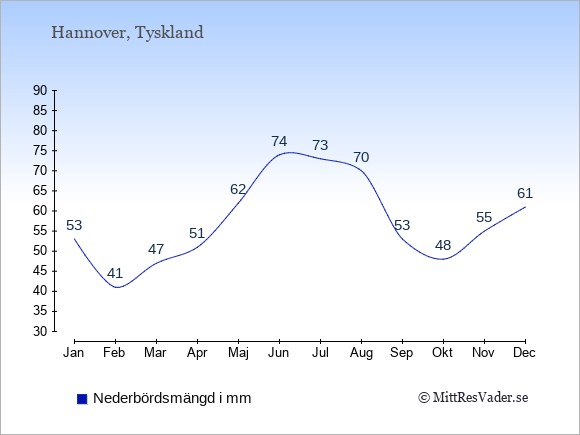 För att se hur vädret i Hannover skiljer sig från vädret hemma, kan du också jämföra siffrorna måned för måned med motsvarande siffror för Sverige under samma period här: Hannovers klimat.