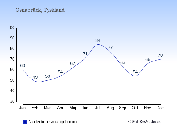 För att se hur vädret i Osnabrück skiljer sig från vädret hemma, kan du också jämföra siffrorna måned för måned med motsvarande siffror för Sverige under samma period här: Osnabrücks klimat.