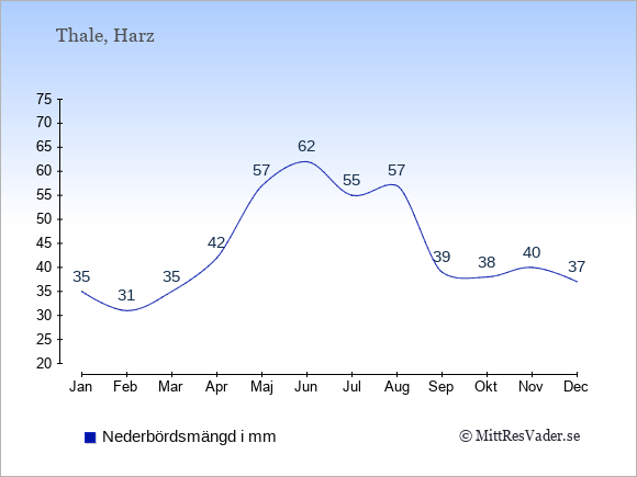 Få en överblick över vädret i Thale månad för månad med temperaturer, soltimmar och nederbörd.