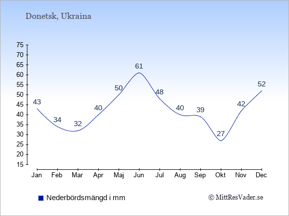 För att se hur vädret i Donetsk skiljer sig från vädret hemma, kan du också jämföra siffrorna måned för måned med motsvarande siffror för Sverige under samma period här: Donetsks klimat.