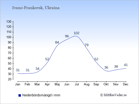 För att se hur vädret i Ivano-Frankovsk skiljer sig från vädret hemma, kan du också jämföra siffrorna måned för måned med motsvarande siffror för Sverige under samma period här: Ivano-Frankovsks klimat.