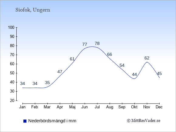 För att se hur vädret i Siofok skiljer sig från vädret hemma, kan du också jämföra siffrorna måned för måned med motsvarande siffror för Sverige under samma period här: Siofoks klimat.