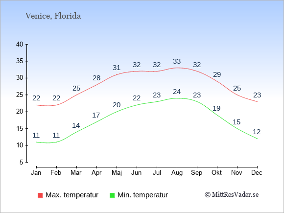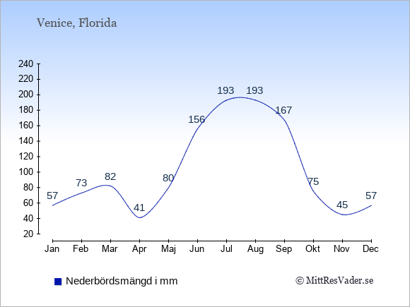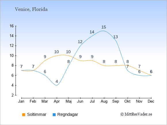 Se även vädret i Venice året runt uten klimatuppgifter för Stockholm.