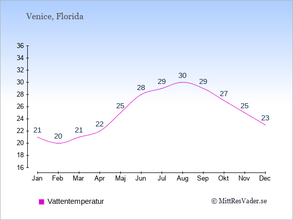 Om du vill veta hur vädret kommer att bli de kommande dagarna, kan du också se en väderprognos för Venice med den aktuella vattentemperatur just nu under: Väder Venice.