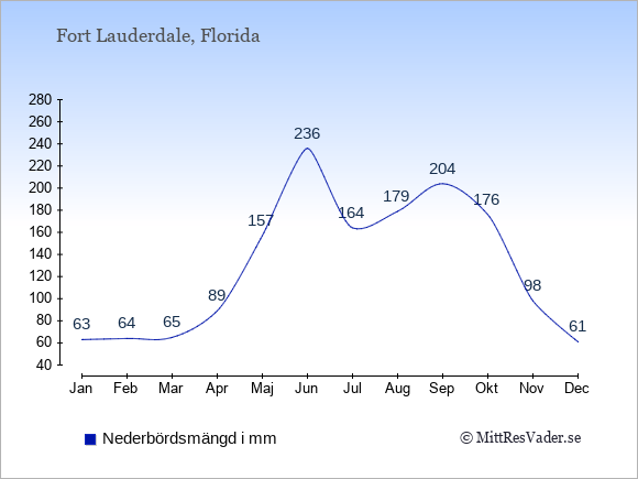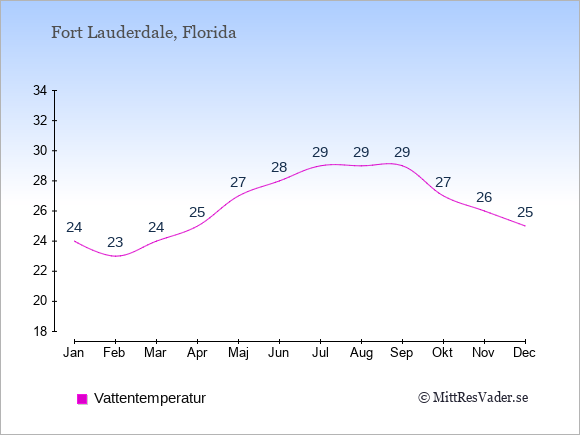 För att se hur vädret i Fort Lauderdale skiljer sig från vädret hemma, kan du också jämföra siffrorna måned för måned med motsvarande siffror för Sverige under samma period här: Fort Lauderdales klimat.