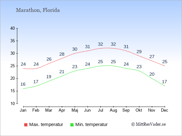Få en överblick över vädret i Marathon månad för månad med temperaturer, vattentemperatur, soltimmar och nederbörd.