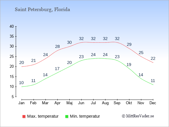 Genomsnittligt väder i Saint Petersburg, Florida
