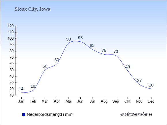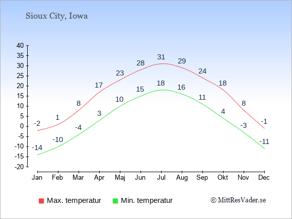 Se även vädret i Sioux City året runt uten klimatuppgifter för Stockholm.