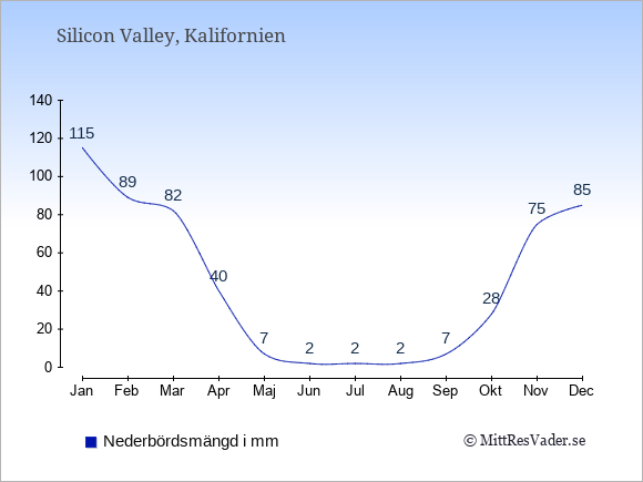 Genomsnittligt väder i Silicon Valley, Kalifornien