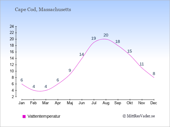 Genomsnittligt väder på Cape Cod, Massachusetts