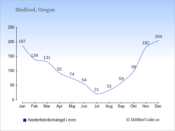 Genomsnittligt väder i Medford, Oregon