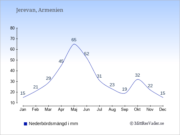 För att se hur vädret i Armenien skiljer sig från vädret hemma, kan du också jämföra siffrorna måned för måned med motsvarande siffror för Sverige under samma period här: Armeniens klimat.