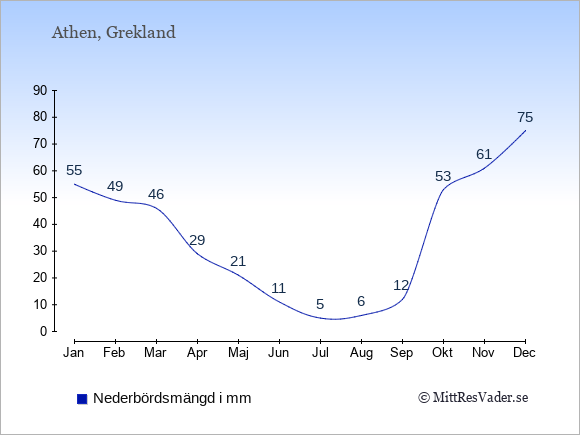 Normalt ligger temperaturen i Grekland (Athen) därför i en viss månad i intervallet mellan den genomsnittligt högsta och lägsta temperatur. I juli är det till exempel oftast upp till ca. 32 grader under dagen