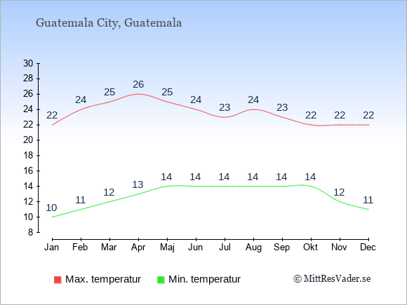 Genomsnittligt väder i Guatemala (Guatemala City)