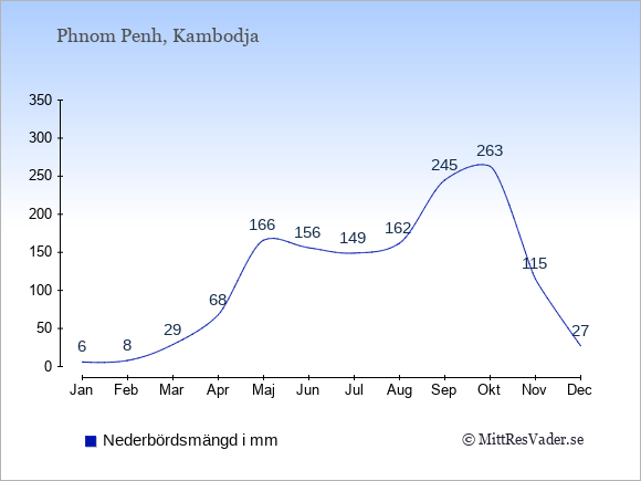 För att se hur vädret i Kambodja skiljer sig från vädret hemma, kan du också jämföra siffrorna måned för måned med motsvarande siffror för Sverige under samma period här: Kambodjas klimat.