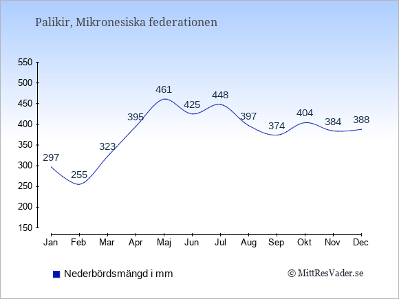 För att se hur vädret i Mikronesiska federationen skiljer sig från vädret hemma, kan du också jämföra siffrorna måned för måned med motsvarande siffror för Sverige under samma period här: Mikronesiska federationens klimat.