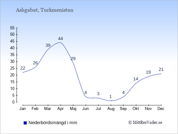 För att se hur vädret i Turkmenistan skiljer sig från vädret hemma, kan du också jämföra siffrorna måned för måned med motsvarande siffror för Sverige under samma period här: Turkmenistans klimat.