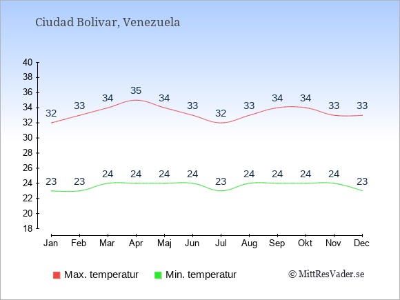 Klimatdata för Ciudad Bolivar, Venezuela