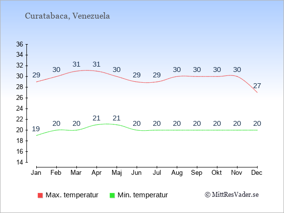 Genomsnittligt väder i Curatabaca, Venezuela